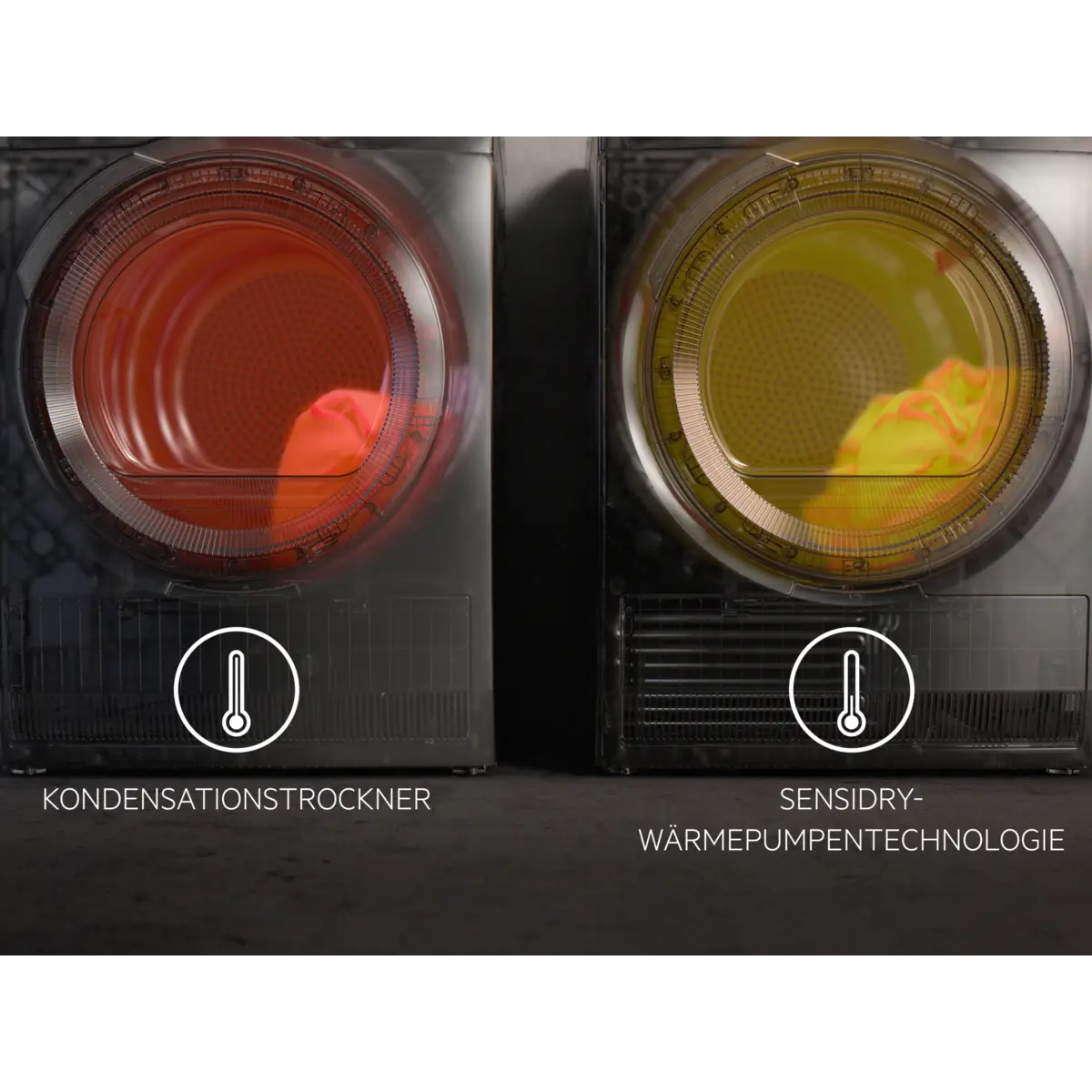 Bei der SensiDry®-Wärmepumpentechnologie kommen präzise Sensoren zum Einsatz, die für gleichmäßige Trockenergebnisse sorgen - bei niedrigen Temperaturen. Deine Textilien werden geschont und du sparst Energie.