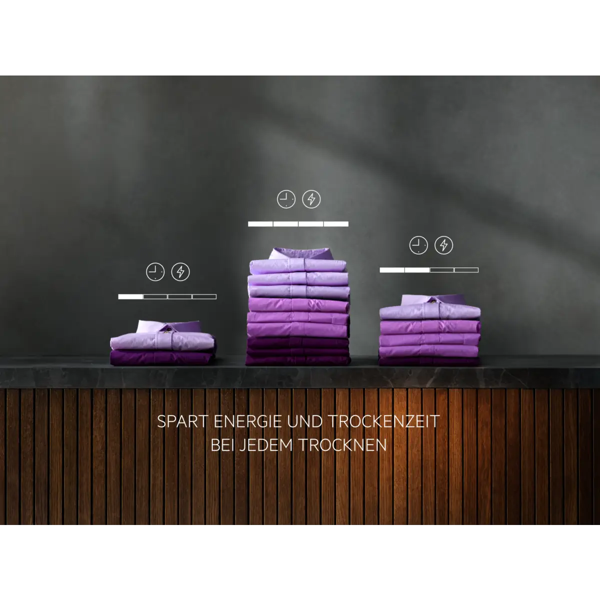 Die innovativen ProSense-Feuchtigkeitssensoren sparen Zeit und Energie. Sie passen den benötigten Zeitaufwand und Energieverbrauch an die Wäschemenge an. So erhält deine Wäsche exakt die richtige Pflege bei jedem Trockenvorgang, für einen langfristig perfekten Look und ein angenehmes Tragegefühl.