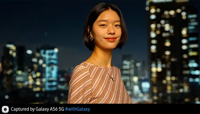 Die Kameras des neuen Galaxy A56 5G sind noch fortschrittlicher als zuvor und absorbieren viel Licht für rauscharme, hochauflösende Nachtaufnahmen.⁹